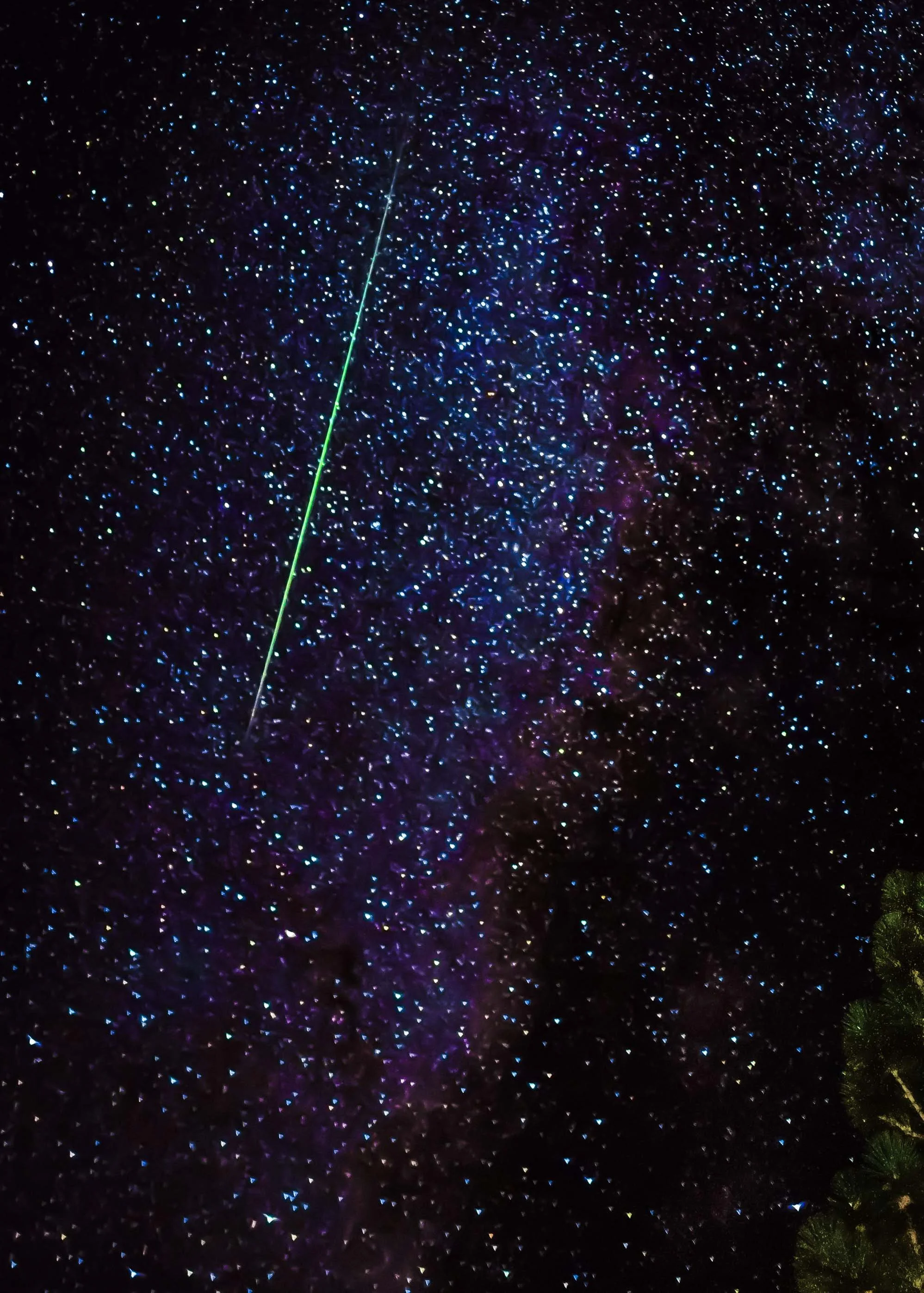 This photograph is from August 12, 2016, and was captured in the wide-open parking lot of a friend’s parents’ condo in Lake Tahoe. It’s a photograph of a Perseid meteor streaking across the night sky.